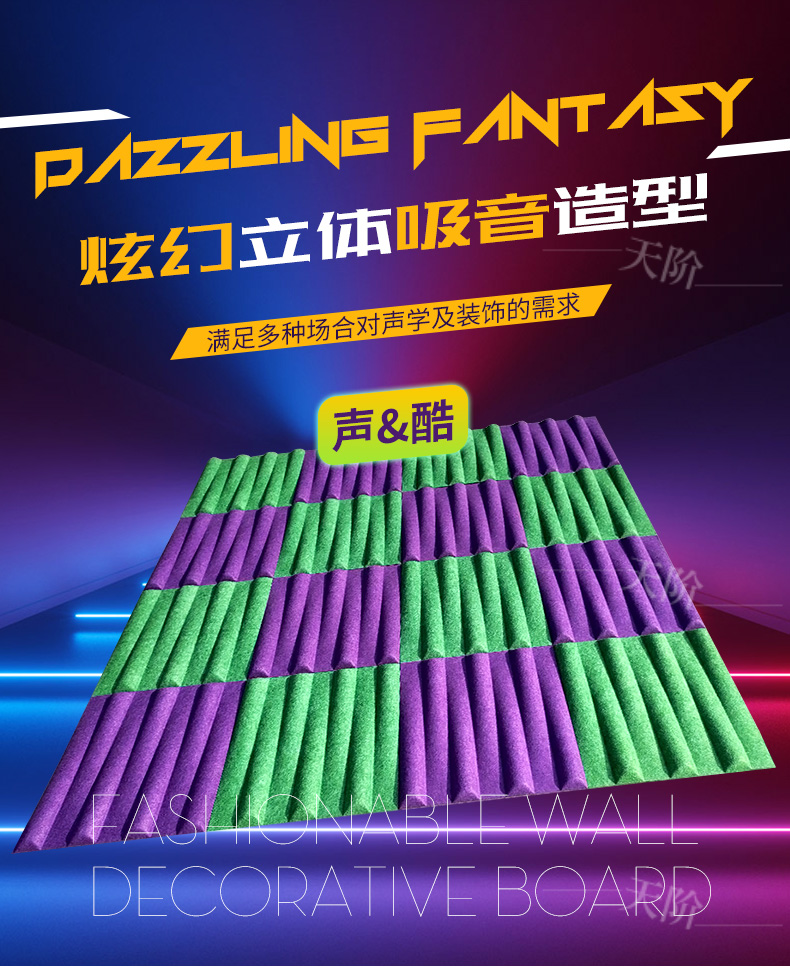 3D聚酯纖維吸音板是今年新研發產品,采用的是綠色環保高新技術熱壓合成繭棉形狀的纖維板材,具有環保,防火,吸音,3D效果裝飾性更立體,易安裝等功能。