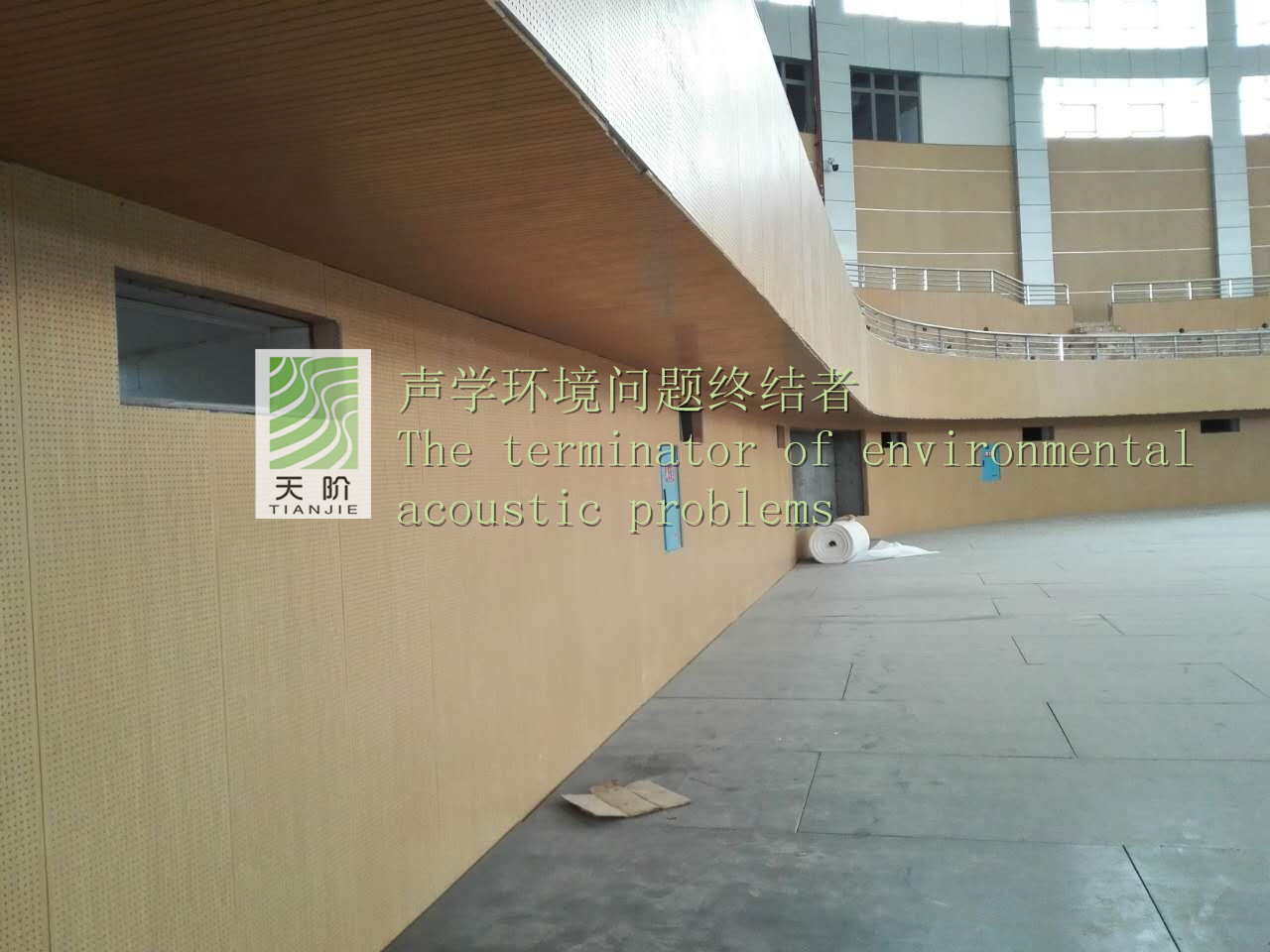 湖南省懷化體育館位于湖南省懷化市。天階聲學經(jīng)過多次與客戶洽談。懷化體育館的室內(nèi)聲學優(yōu)化設計方案也是天階聲學獨立設計完成。公司以優(yōu)質的產(chǎn)品質量和專業(yè)的服務,獲得客戶的認可,最終簽訂合同。現(xiàn)在貨已供完,通過驗收,并已投入使用中。項目多次獲得客戶和甲方的認可和贊揚,此工程運用了天階牌吸音板5000平方的防火孔木吸音板。