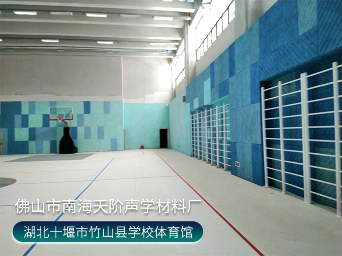 湖北十堰市竹山縣學校項目選用彩色噴色的木絲吸音板,原料是白楊木絲纖維制作而成,環保安全,遇火不燃燒,木絲間吸音降噪,效果顯著,表面有彩色噴色和原木色可選。