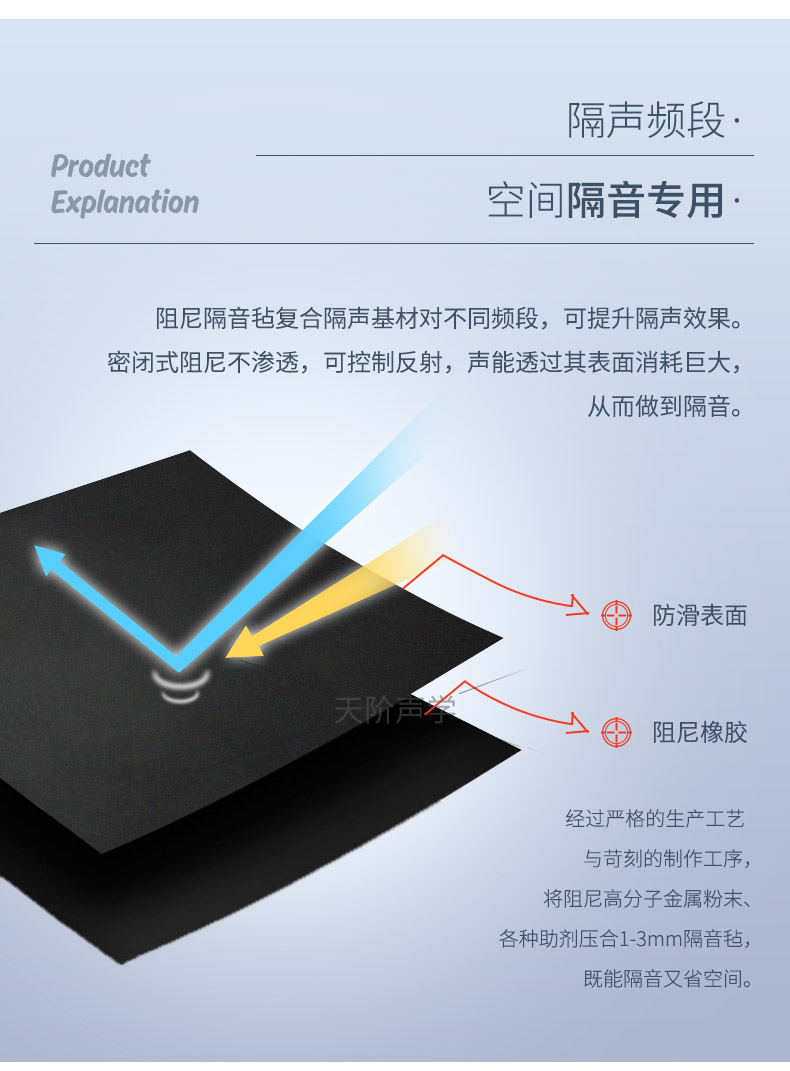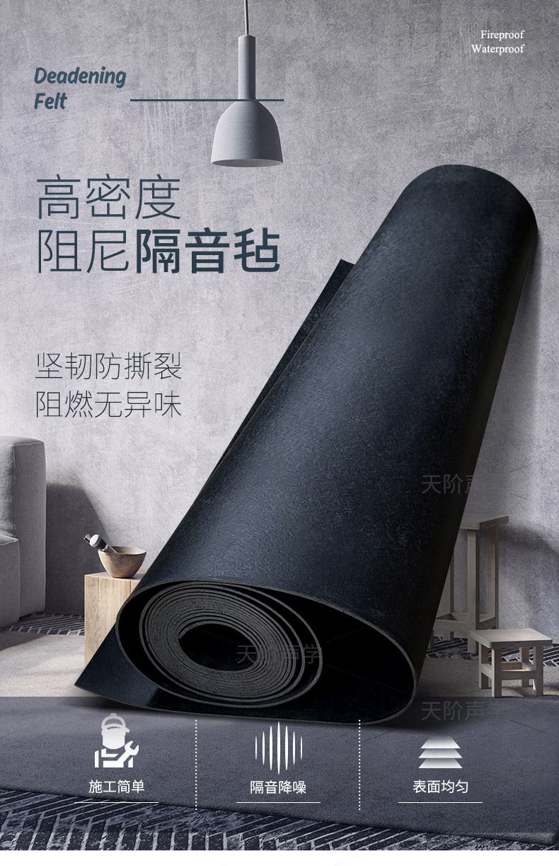 阻尼隔音氈以高純度精細(xì)鐵粉為原料,應(yīng)用新的減震隔音技術(shù),開發(fā)研制出針對(duì)地板、墻壁、管道的隔音材料。能夠有效地阻隔外界的噪聲,營(yíng)造一個(gè)安全、安靜、舒適的環(huán)境。