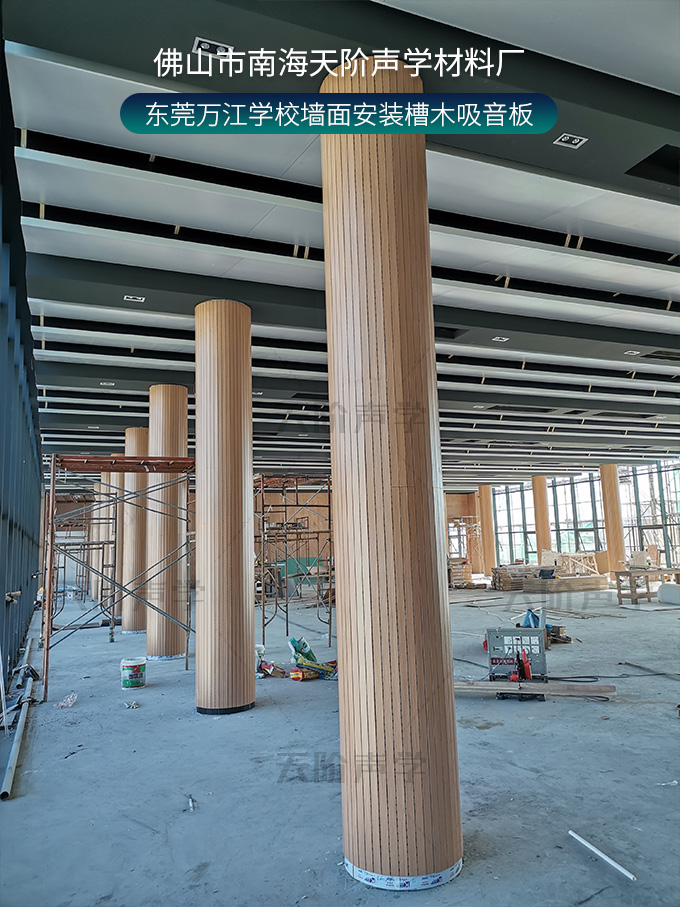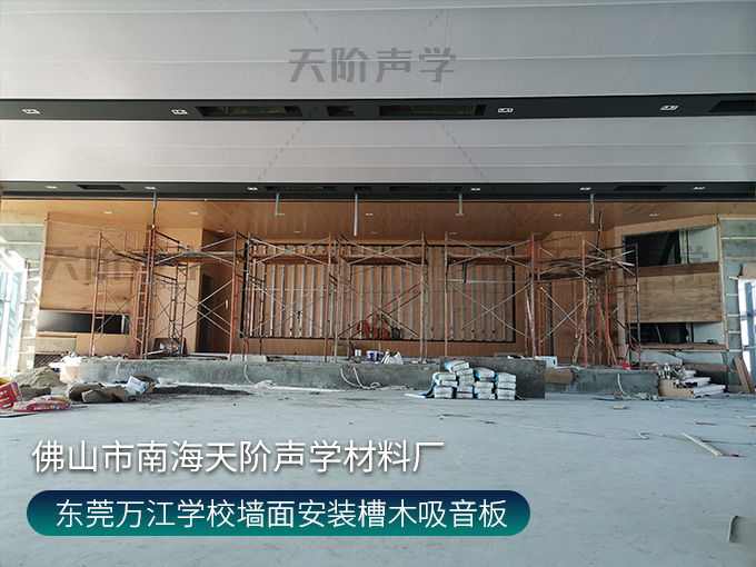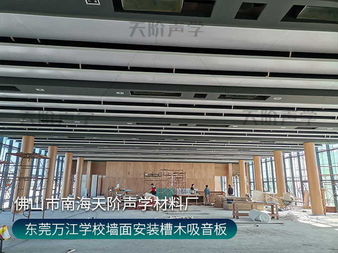 東莞萬江學(xué)校墻面安裝槽木吸音板