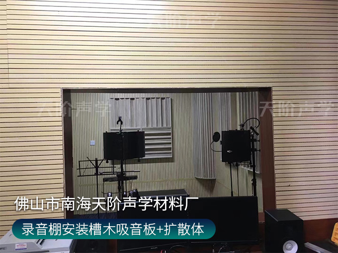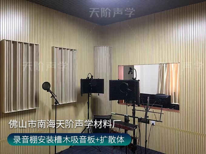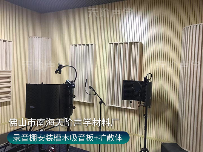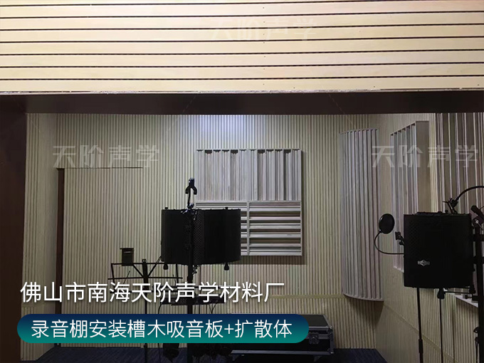 錄音棚安裝槽木吸音板+擴散體