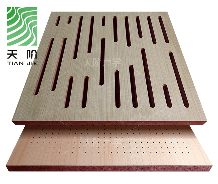 天階聲學(xué)孔木吸音板采用高質(zhì)的中纖板、具有環(huán)保、防火、防潮等性能,飾面顏色及材料選擇性廣,能很好地滿足客戶多樣化的聲學(xué)及裝飾需求。較槽木吸音板,孔木吸音板相對抗撞擊能力強。